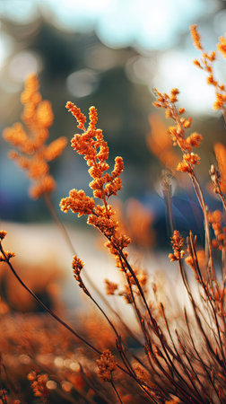 The Penstemon in fall, warm amber light, crisp air, shallow depth of field, soft natural bokeh, true to life color, minimal styling.