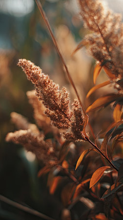 Common golden reed shrub featuring sun rays going through seeds and leaves