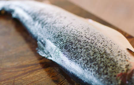 Fish Salmon on the cooking table of a cook