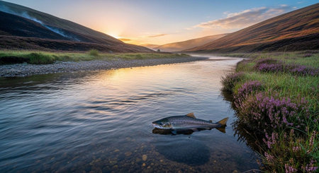 Fish jumping over the river. animals and wildlife