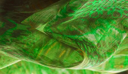 Delicate dark green fabric, emerald material chiffon waves.