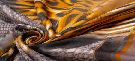 Texture, background, pattern, silk fabric, print on the theme of Africa, the skin of a wild beast