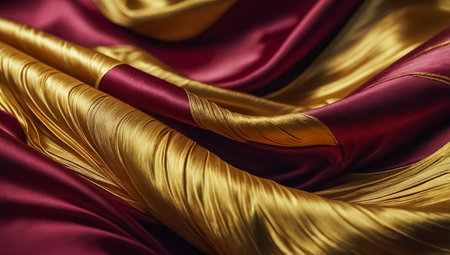 Closeup of rippled red and gold satin silk fabric