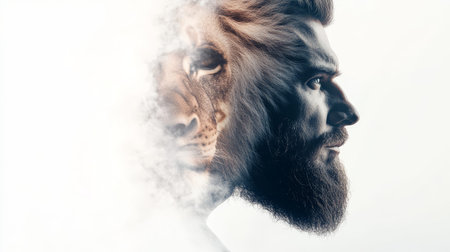 Conceptual triptych portrait showing multiple facets of a confident woman with blonde hair surrounded by mysterious and dramatic blue smoke