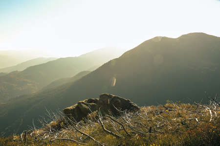 Sunset over the mountains. Beautiful natural background. Shallow depth of field.