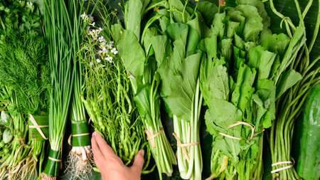 Fresh organic Asian green vegetables from local farmer market, Northern Thailand