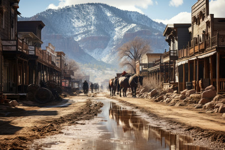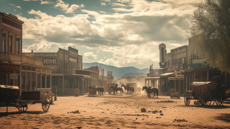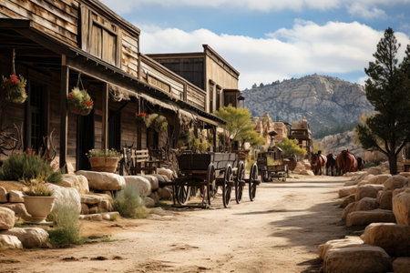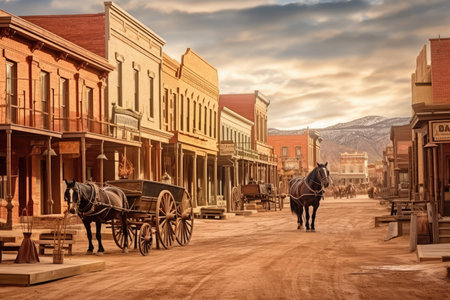Picturesque view of a vintage wild west town, evoking the historic charm of the american frontier