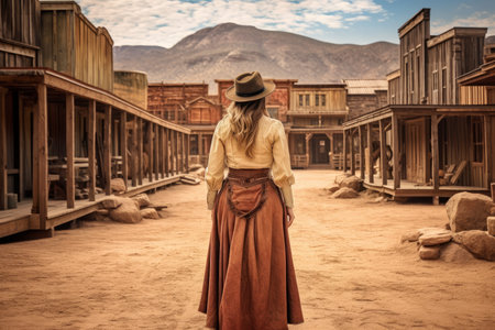 Cowboy girl walk wild west. Texas movie. Generate AI