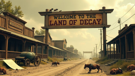 Welcome to the Land of Decay Abandoned Western Town Digital Art, generative Ai