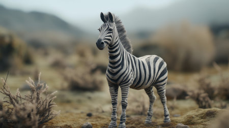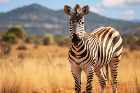 African zebra. Striped Horse in African savannas. Black and white zebra stripes.