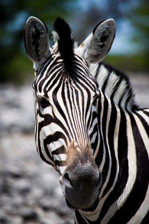 Head of a Zebra in the Etosha National Park in Namibia, Africa concept for traveling in Africa