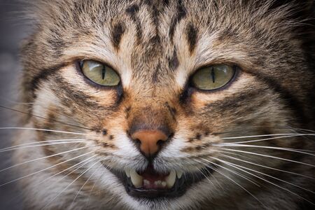 Close-up portrait of a cat with open mouth. Shallow depth of field