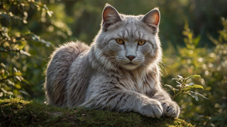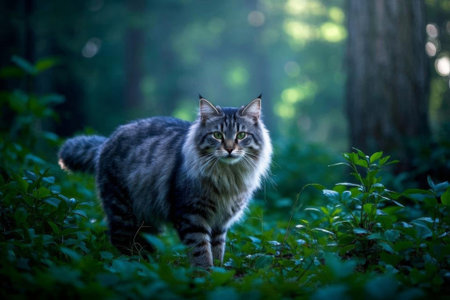 Long-haired cat in the forest
