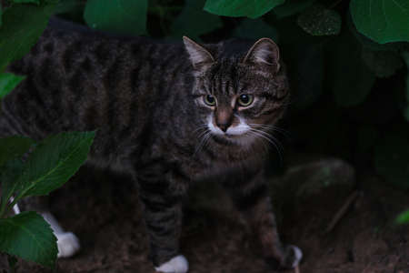 cool moody shoot of a house cat outside. hunting and playing in the wild.