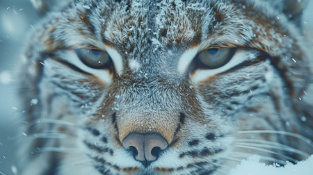 Snow nature. Lynx face walk. Winter wildlife in Europe. Lynx in the snow, snowy forest in February. Wildlife scene from nature, Slovakia. Winter wildlife in Europe. AI Generated.
