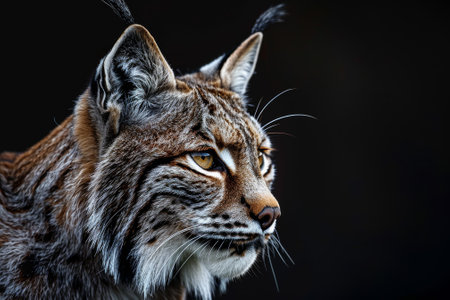 Portrait of a wild lynx on a dark background. Wildlife scene from nature.