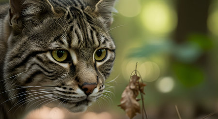 A close up of a wild cat close-up. Generative AI.