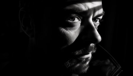 black and white dramatic portrait of a guy