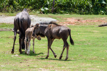 View of wildlife animal Wildebeest in game reserve on safari in South Africa