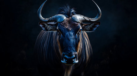 Generative AI Image of Close Up Wildebeest Face with Black Background