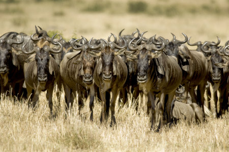 Wildebeest (Connochaetes taurinus) in the savannah of Africa