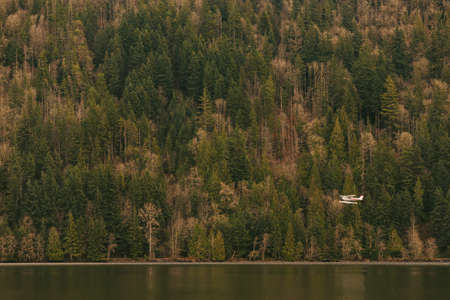 A small wooden house covered with snow near the Emerald Lake in Canada in winter