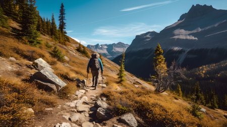 An AI generated hiker trekking up a rugged mountainside path