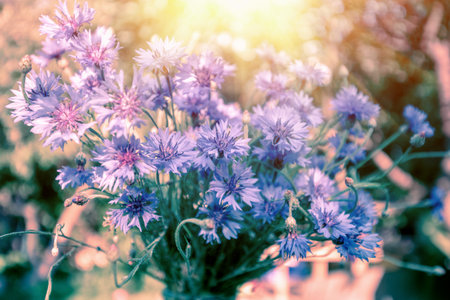 A bouquet of cornflowers (Centaurea) in the garden on a summer sunny day
