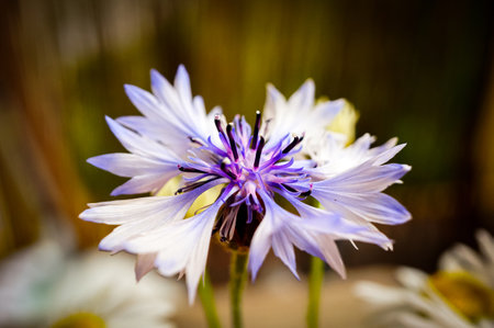 A macro shot of a beautiful Centaurea cyanus or cornflower outdoors during daylight