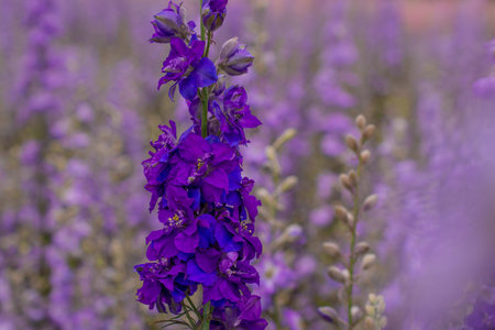 Consolida ajacis purple flowers blooming