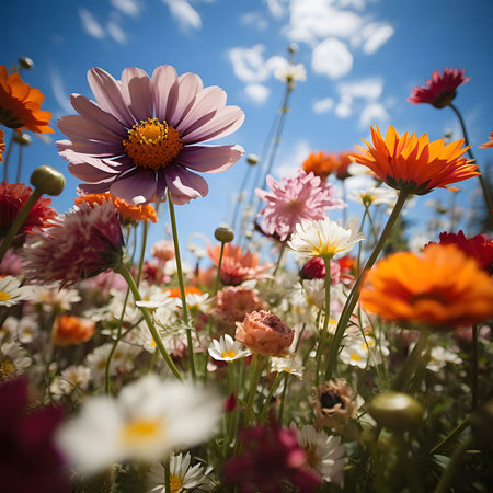 Idyllic meadow with colorful wildflowers under a serene sky