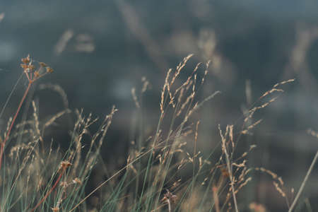 Dry herbs in the sunset. Beautiful blurred background