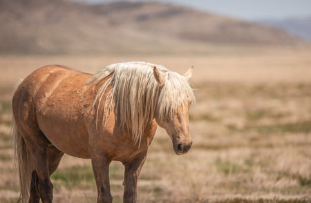 A lone palomino mustang standing in the Utah desert