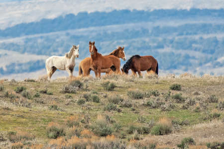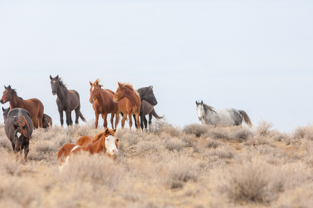 Wild horses range the Pryor Mountains outside Lovell, Wyoming.