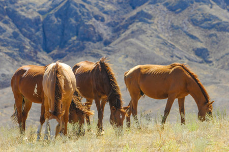 wild horses in the prarie in the old abandonned small village of Death valley junction, an old Borax Mining east of the Death valley