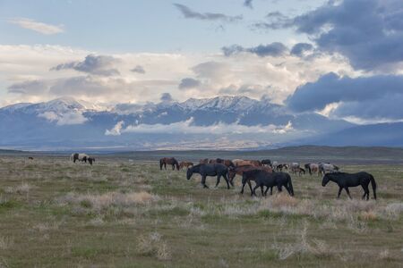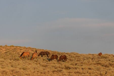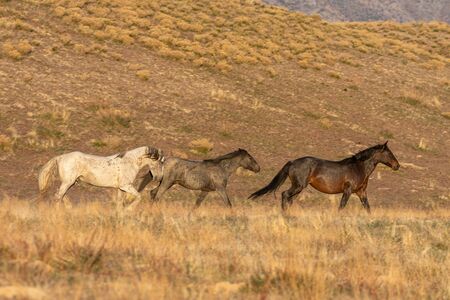 Wild Horse Stallions in the Utah Desert at Sunset, United States