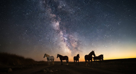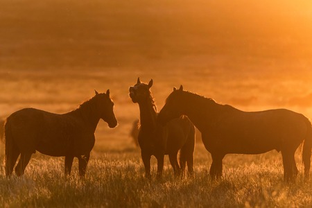 Wild horses in the light of sunrise