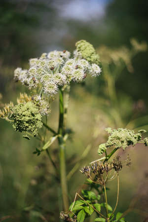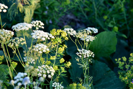 Aegopodium podagraria, bishop's weed plant in bloom. Medical herb.