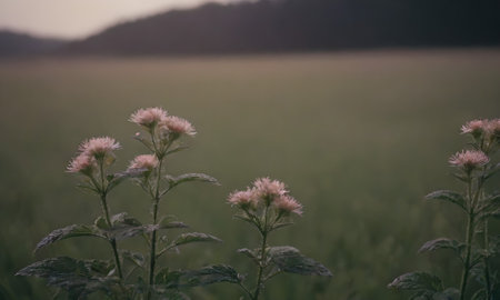 Close-up of small white wildflowers in the evening, background in gentle tones