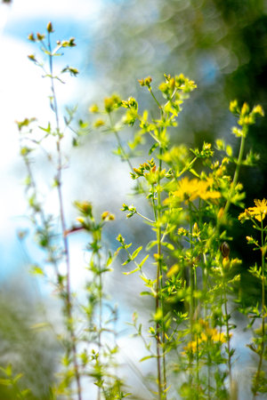 Yellow flowers of St. John's wort (Hypericum perforatum)
