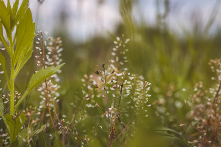 Field plants on a sunny day in June. Blurred background. Close-up of a plant.
