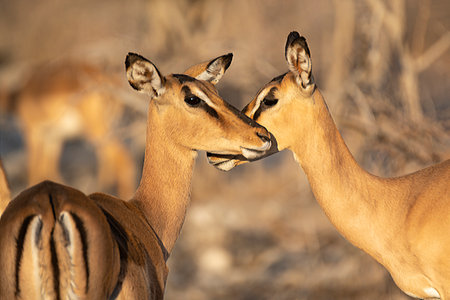 Portrait of Two Blackfaced Impala in Etosha National Park, Namibia, Africa.