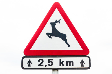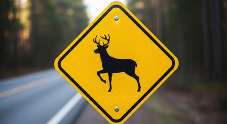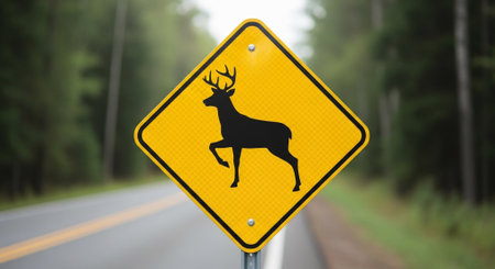 Deer crossing warning sign on a road