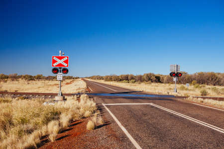 Reduce speed to 80 kilometers per hour signage in the Australian bush beside a road and in front of a railway line