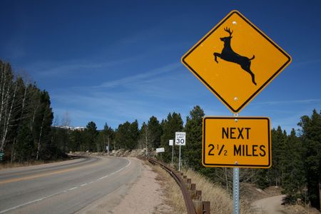 Deer Road Warning Sign Next 10 miles