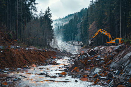 Dams Dismantling, Repair of Dam, Destroyed Dam on a River in Forest, Generative AI Illustration
