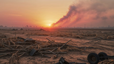 AI Generated. Large Scale Agricultural Land Destruction at Sunset