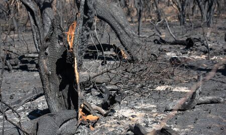 After the fire, grey trees and dead. Taken in La Pampa, Argentina.
