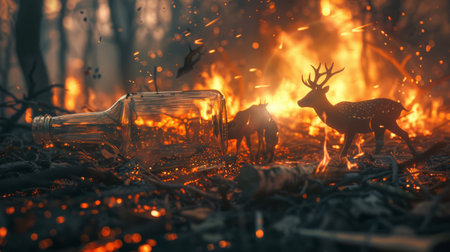 A creative depiction of wild animals amidst a forest fire, illustrating the impact of wildfires on wildlife and raising environmental concerns.