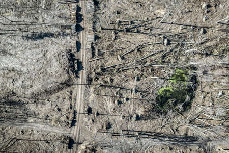 Terrible deforestation in Poland. Logging and environmental destruction. Aerial view nature in Poland